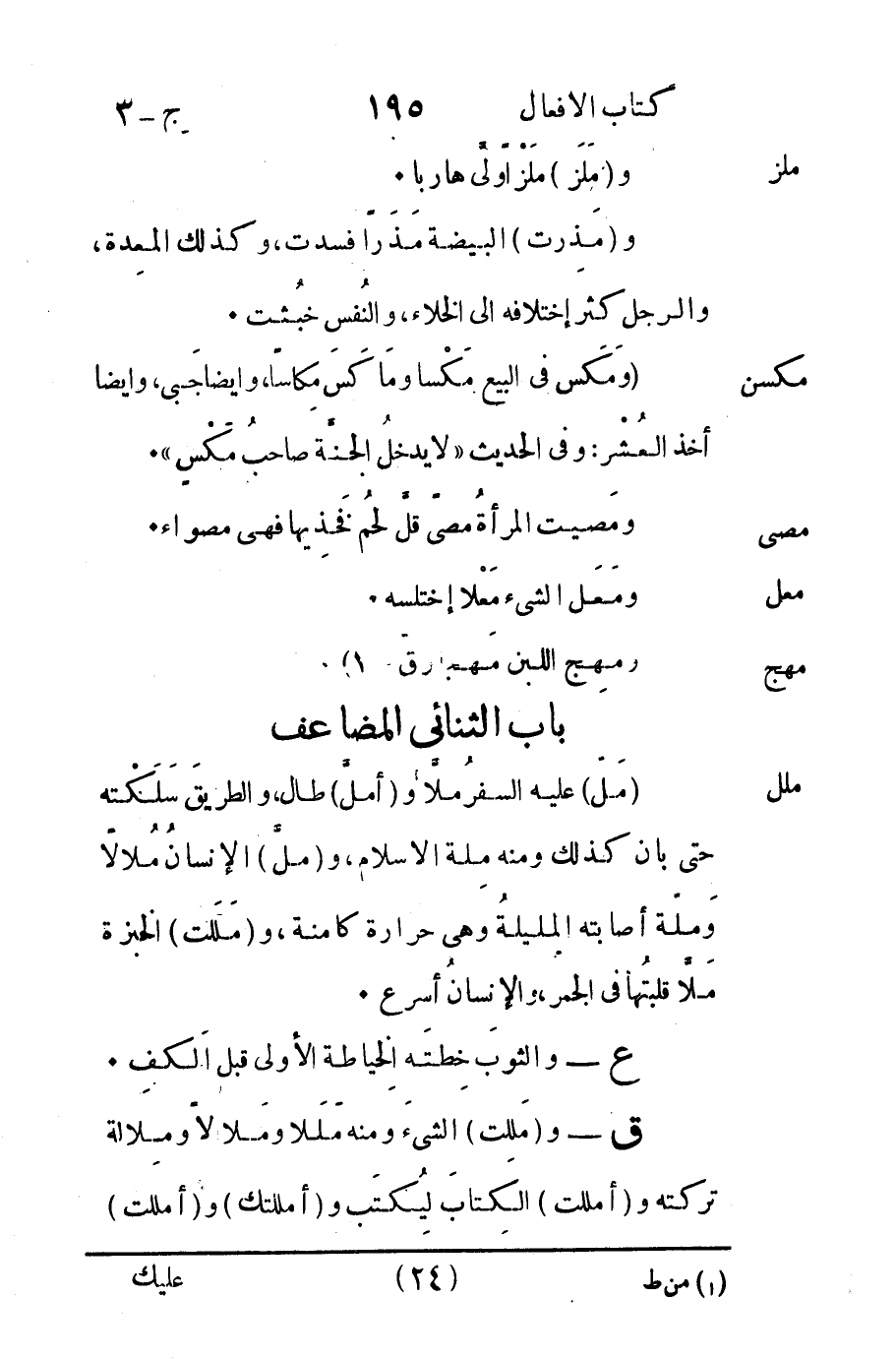 ق - و "مَلِلت" الشيءَ ومنه وملالاً ومِلالة تركته و "أمللت" الكتاب ليُكتب و "أمللتك" و "أمللت"