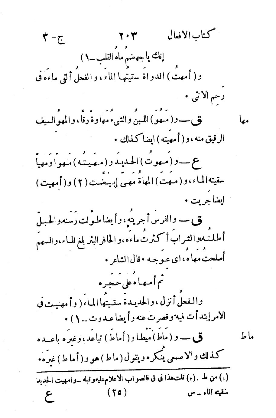 2 قلت هذا في ق فالصواب الإعلام عليه وقبله - وامهيت الحديد سقيته الماء. - س.