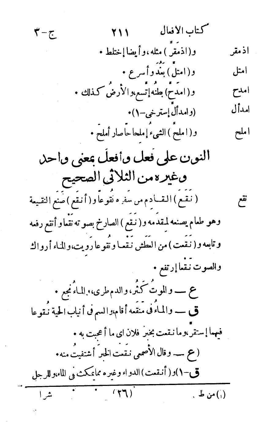 النون على فعل وأفعل بمعنى واحد وغيره من الثلاثي الصحيح