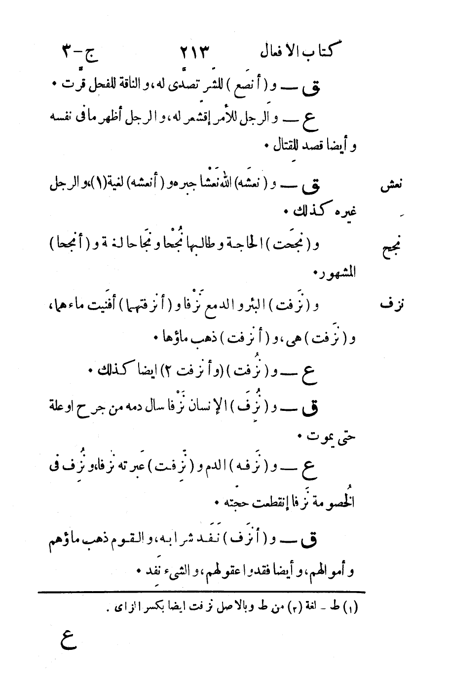2 من ط وبالأصل نزفت أيضا بكسر الزاي.