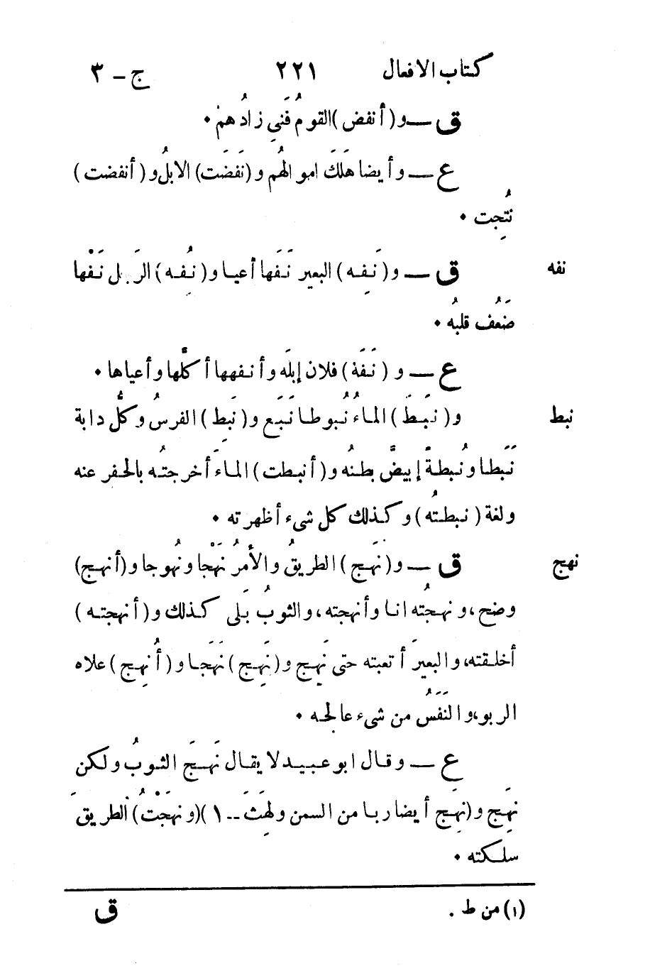ع - وأيضاً هَلَك أموالُهم و "نَفَضت" الإبلُ و "أنفضت" نُتِجت.