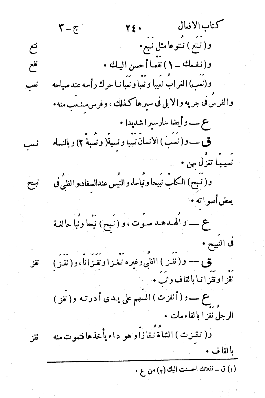نفز: ق - و "نَفَز" الظبيُ وغيره نَفْزاً ونَفَزَاناً و "نَفَزَ" نَفْزاً ونَقَزاناً بالقاف وثَبَ.