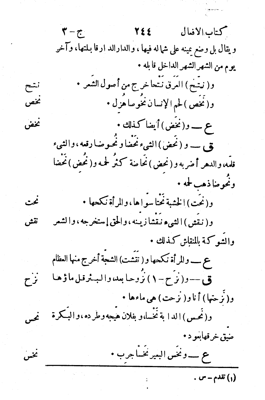 نحض: ع - و "نحَض" الشيء نحْضاً ونُحوضاً رقعه والشيء قلَمه والدهر أضربه و "نحض" نحاضةً كثُر لحمه نحص: و "نُحِص" نَخْصاً ونُحوضاً ذهب لحمه.