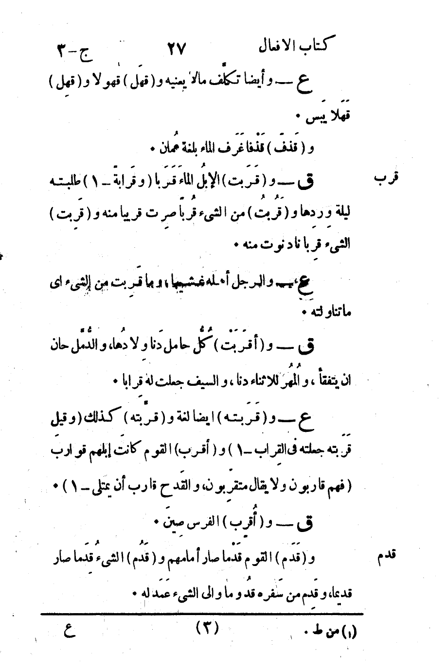 ق - و "أقَرَبْت" كُلُّ حامل دَنا ولادُها والدُّمَّل حان أن يتفقأ والمُهُر للأثناء دنا والسيف جعلت له قِرابا.