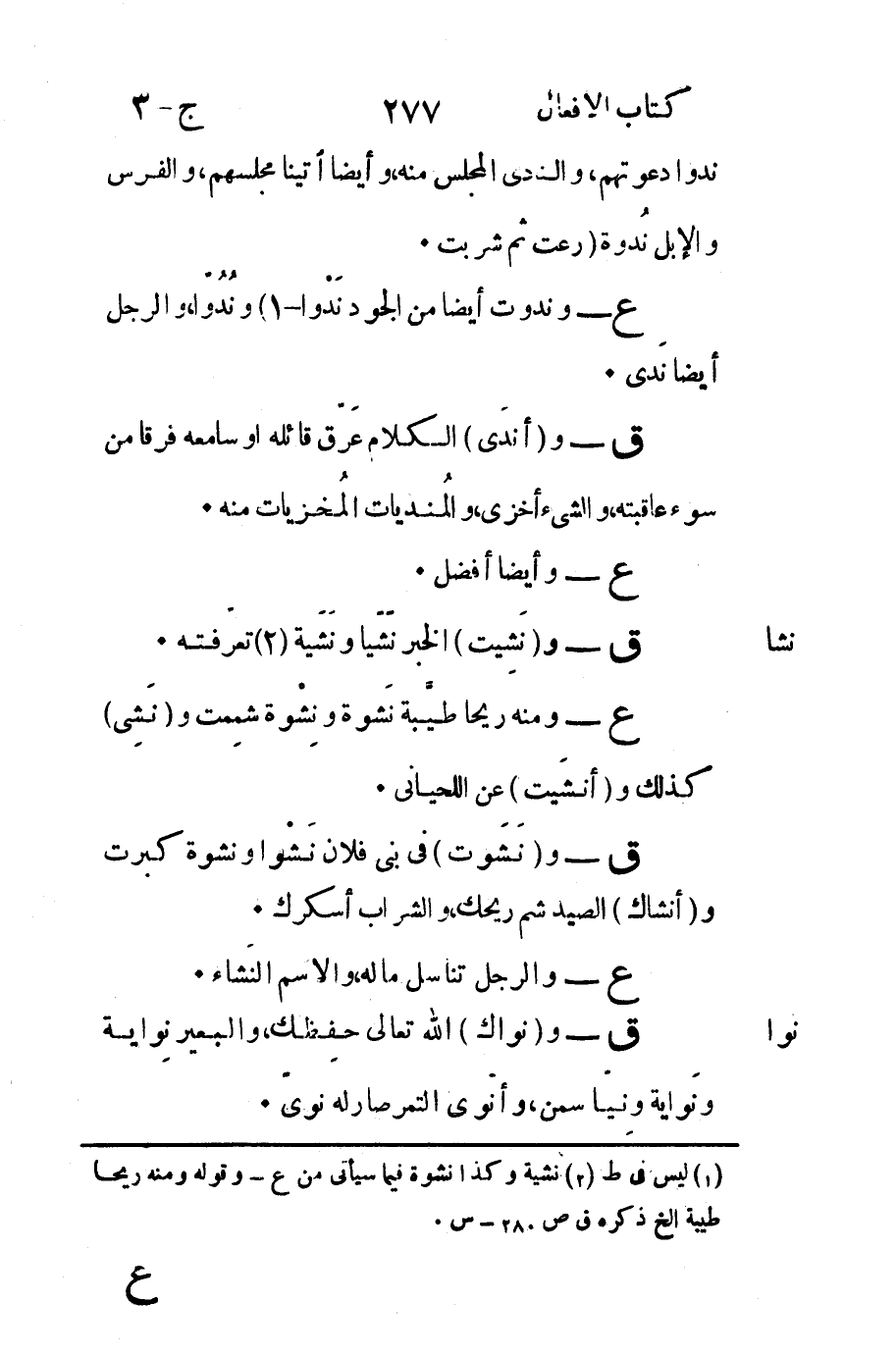 ندوا دعوتهم والندى المجلس منه وأيضاً أتينا مجلسهم والفرس والإبل نُدوة "رعت ثم شربت.