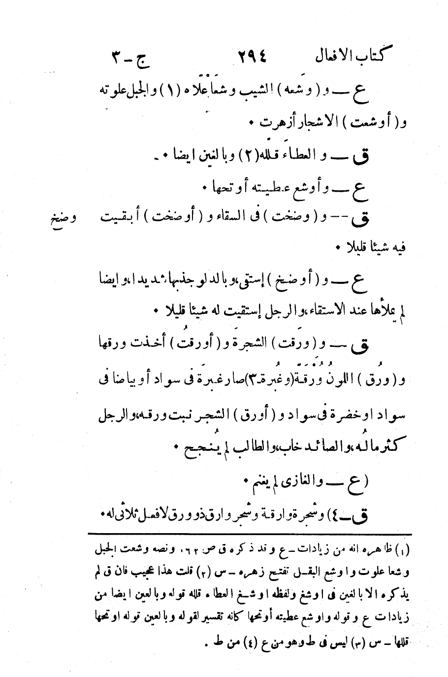 ق -4" وشجرة وارقة وشجر وارق ذو ورق لا فعل ثلاثي له.