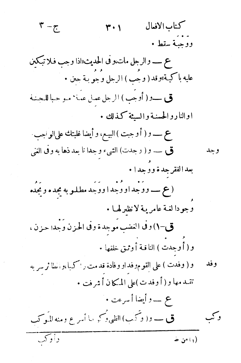 ع - والرجل مات وفي الحديث "إذا وجب فلا تبكين عليه باكية" وقد "وجُب" الرجل وُجُوبة جبن.