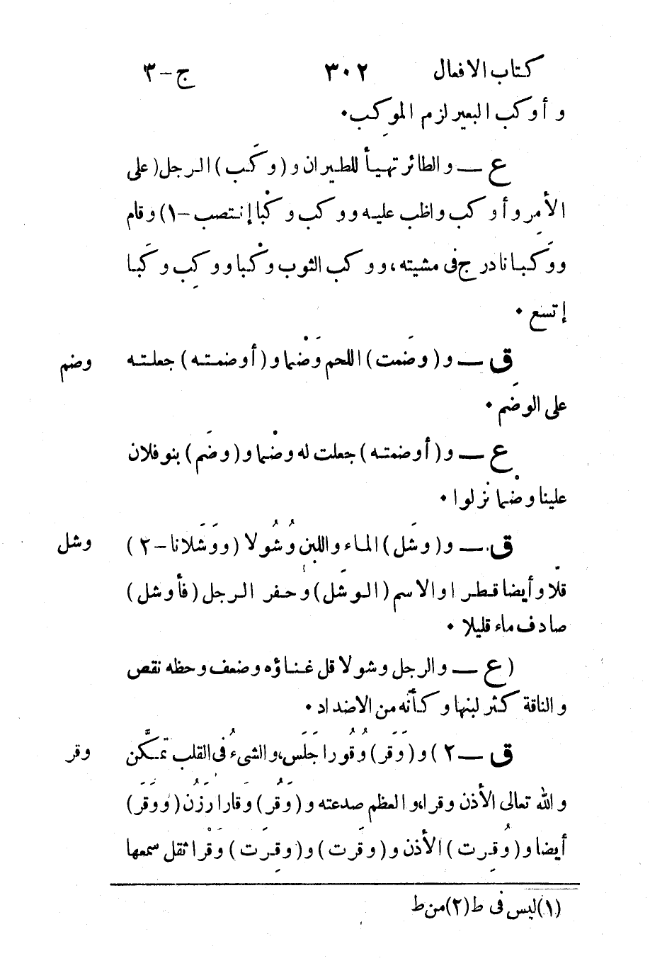 ع - والطائر تهيأ للطيران و "وكَب" الرجل على الأمر وأوكب واظب عليه ووكب وكْباً انتصب -1" وقام ووكَباناً درج في مشيته ووكب الثوب وكْباً ووكِب وكَباً إتسع.