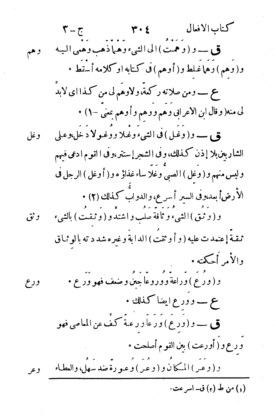 ع - ومن صلاته ركعةً ولا وهَم لي من كذا أي لا بدّ لي من كذا أي لا بدَّ لي منه "وقال ابن الأعرابي وَهَم ووَهِم وأوهم بمعنى -1".