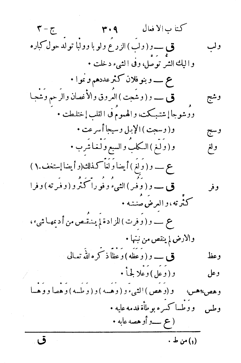 ع - و "وَفِرت" المزادة لَم ينقُص من أديمها شيء والأرض لم ينقص من نَبتها.