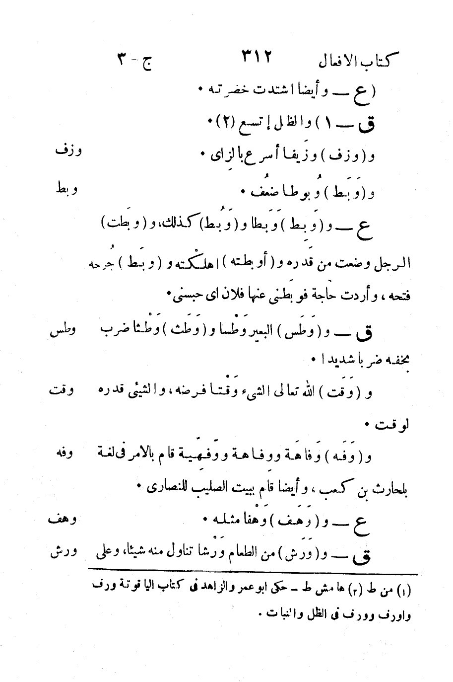 2 هامش ط - حكى أبو عمرو والزاهد في كتاب الياقوتة ورف وارف وورف في الظل والنبات.