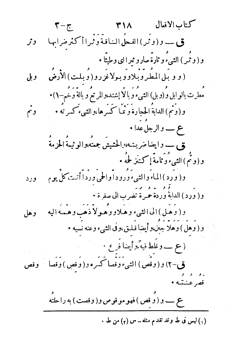 وثر: ق - و "وثَر" الفحلُ الناقةَ وَثْرا أكثر ضِرابها و "وثُر" الشيءُ وثارةً صار وثيرا أي وطيئا.