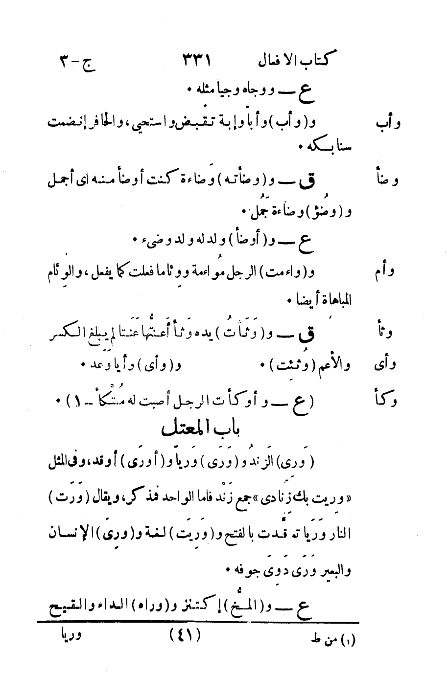 ع - و "وأوضأ" ولد له ولد وضئ.