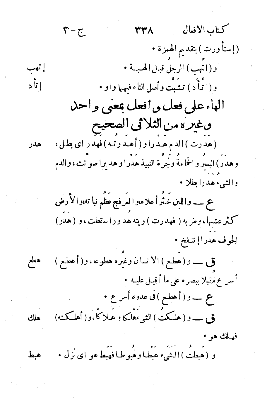 الهاء على فعل وأفعل بمعنى واحد وغيره من الثلاثي الصحيح