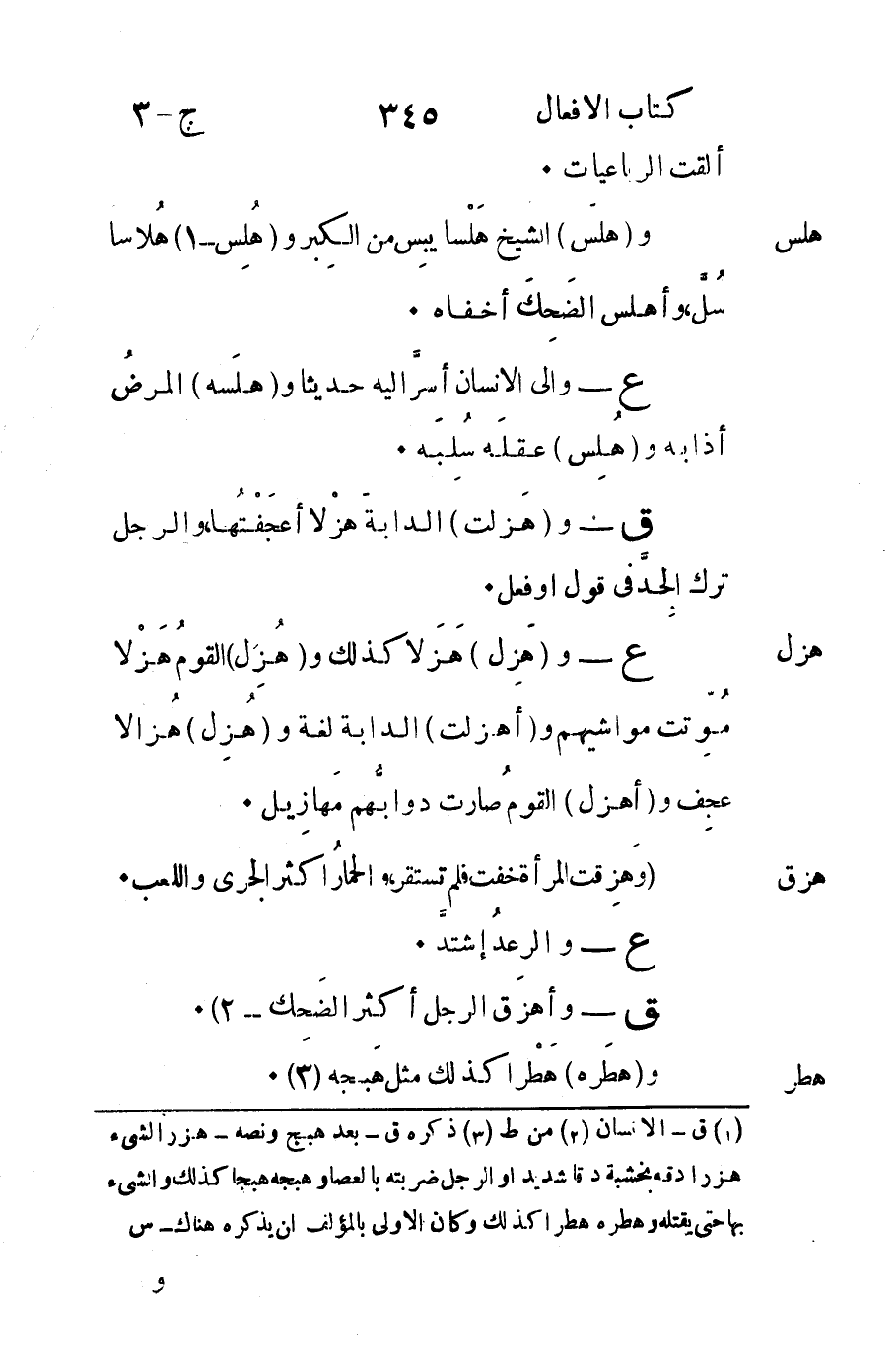 3 ذكره ق - بعد هبج ونصه - هزر الشيء هزرا دقه بخشبة دقا شديدا والرجل ضربته بالعصا وهبجه هبجا كذلك والشيء بها حتى يقتله وهطره هطرا كذلك وكان الأولى بالمؤلف أن يذكره هناك - س.