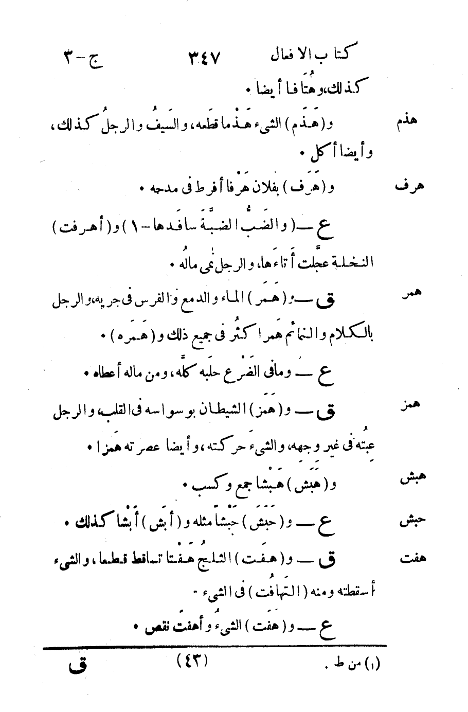 ع - "والضب الضبة سافدها -1" و "أهرفت" النخلة عجلت أتاءها والرجل نمى ماله.