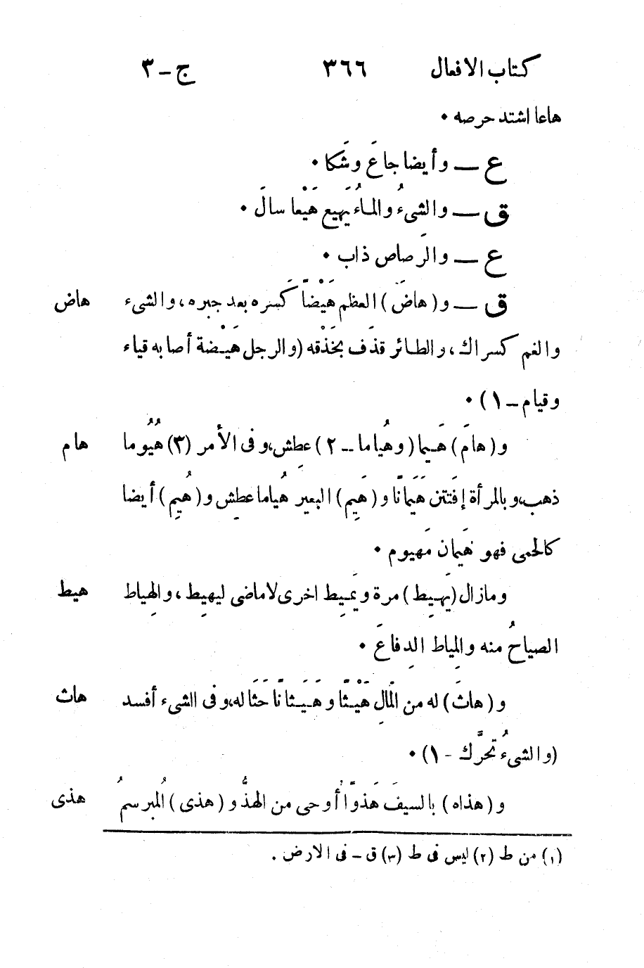 هام: و "هام" هيما "وهياما" عطش وفي الأمر هيوما ذهب وبالمرأة افتتن هيمان و "هيم" البعير هياما عطش و "هيم" أيضا كاحمى فهو هيمان مهيوم.