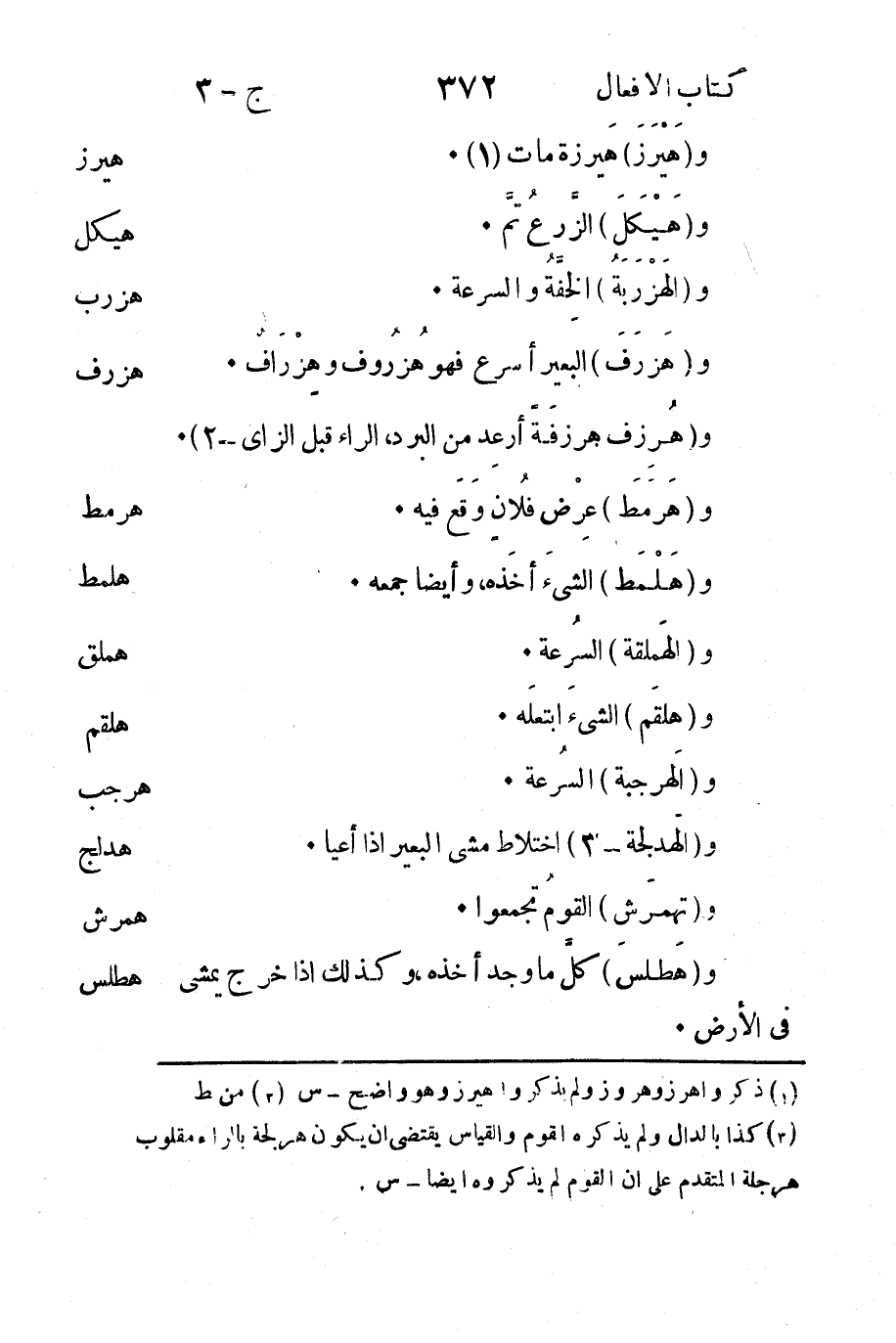 و"هرزف هرزفة أرعد من البرد الراء قبل الزاي".