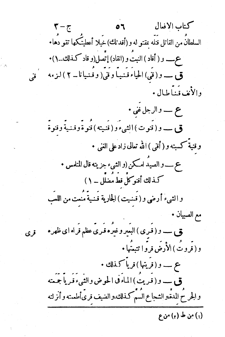 ع - والصيدُ أمكن "والشيء جزيته قال المتلمس كذلك أقنو كلَّ قِطّ مُضلَّل -1".