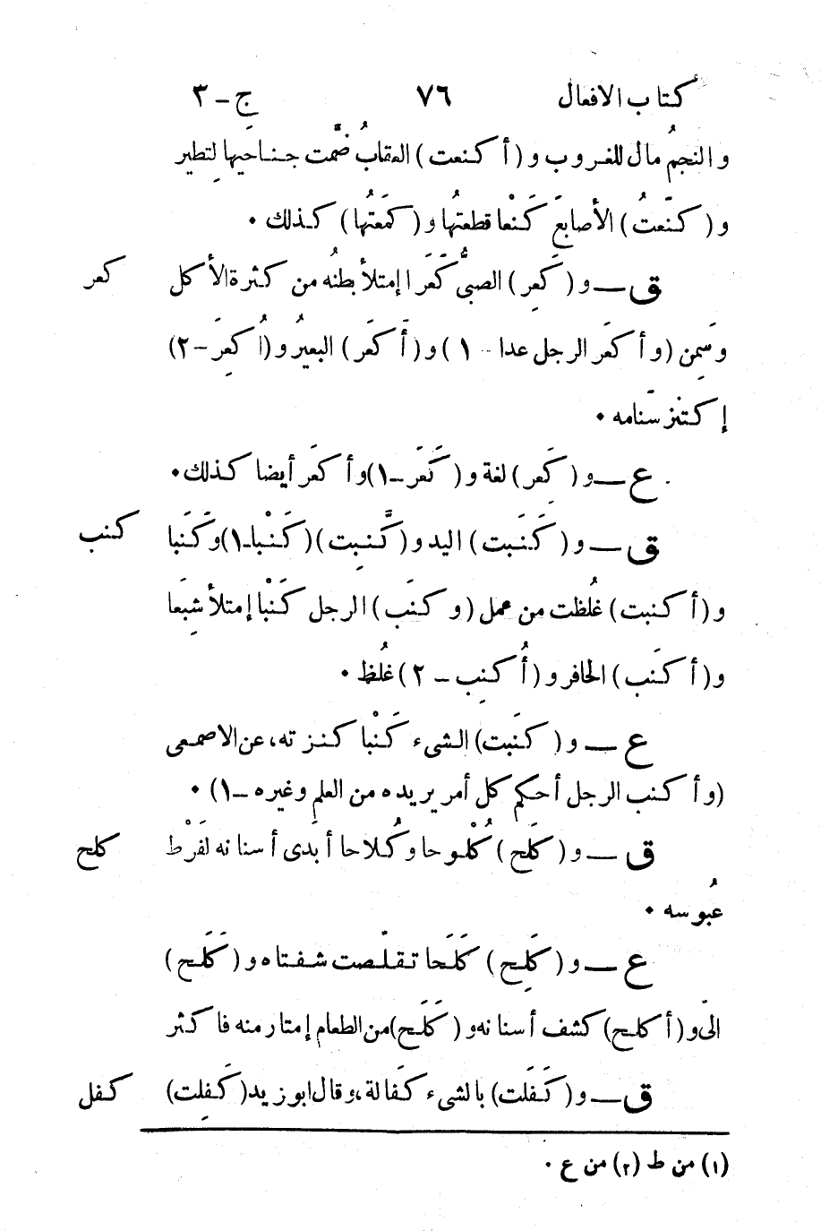 ع - و "كَعِر" لغة و "كَعرَ" و "أكعَر" أيضاً كذلك.