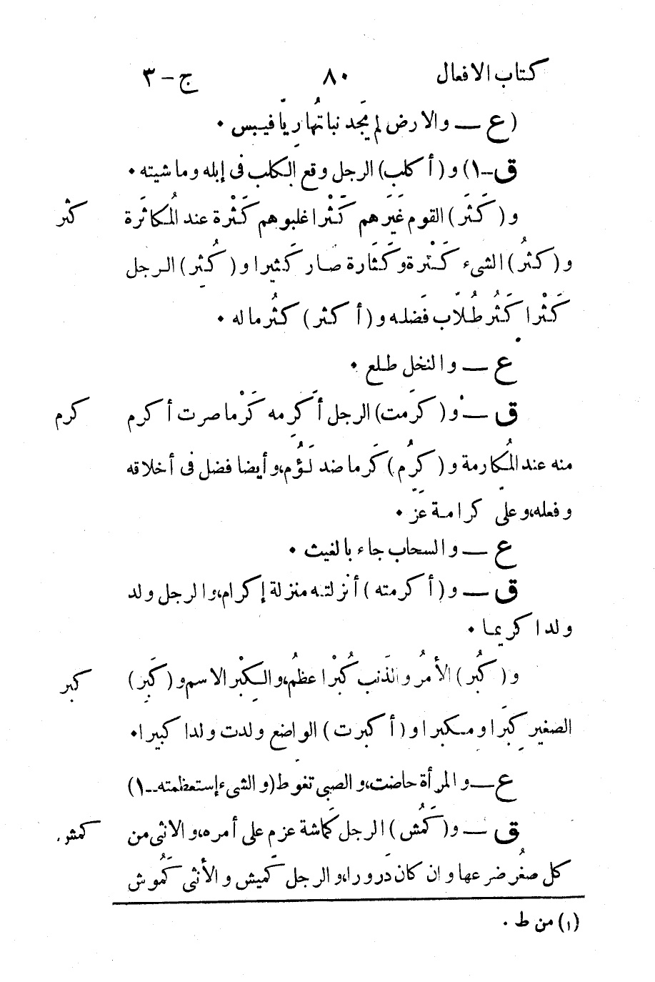 كثر: و "كَثَر" القوم غَيَرهم كّثْر اغلبوهم كَثْرة عند المُكاثرة و "كثُر" الشيء كَثْره وكَثَارة صار كَثيراً و "كُثِر" الرجل كثرْا كَثْر طُلاّب فَضله و "أكثر" كثُر ماله.