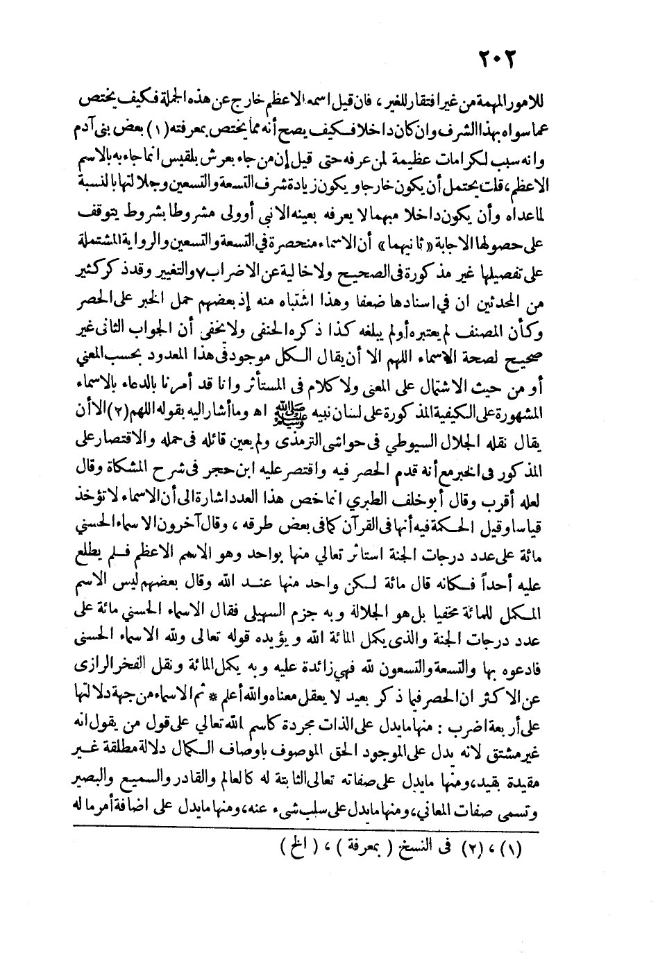 للأمور المهمة من غير افتقار للغير، فإن قيل اسمه الأعظم خارج عن هذه الجملة فكيف يختص عما سواه بهذا الشرف وإن كان داخلًا فكيف يصح أنه مما يختص بمعرفته بعض بني آدم وأنه سبب لكرامات عظيمة لمن عرفه حتى قيل إن من جاء بعرش بلقيس إنما جاء به بالاسم الأعظم، قلت يحتمل أن يكون خارجًا ويكون زيادة شرف التسعة والتسعين وجلالتها بالنسبة لما عداه وأن يكون داخلًا مبهما لا يعرفه بعينه إلَّا نبي أو ولي مشروطًا بشروط يتوقف على حصولها الإجابة "ثانيهما" أن الأسماء منحصرة في التسعة والتسعين والرواية المشتملة على تفصيلها غير مذكورة في الصحيح ولا خالية عن الإضراب والتغيير وقد ذكر كثير من المحدثين أن في إسنادها ضعفًا وهذا اشتباه منه إذ بعضهم حمل الخبر على الحصر وكأن المصنف لم يعتبره أو لم يبلغه كذا ذكره الحنفي ولا يخفى أن الجواب الثاني غير صحيح لصحة الأسماء اللهم إلّا أن يقال الكل موجود في هذا المعدود بحسب المعنى أو من حيث الاشتمال على المعنى ولا كلام في المستأثر وأنا قد أمرنا بالدعاء بالأسماء المشهورة على الكيفية المذكورة على لسان نبيه - صلى الله عليه وسلم - اهـ، وما أشار إليه بقوله اللهم إلّا أن يقال نقله الجلال السيوطي في حواشي الترمذي ولم يعين قائله في حمله والاقتصار على المذكور في الخبر مع أنه قدم الحصر فيه واقتصر عليه ابن حجر في شرح المشكاة وقال لعله أقرب وقال أبو خلف الطبري إنما خص هذا العدد إشارة إلى أن الأسماء لا تؤخذ قياسًا وقيل الحكمة فيه أنها في القرآن كما في بعض طرقه، وقال آخرون الأسماء الحسنى مائة على عدد درجات الجنة استأثر تعالى منها بواحد وهو الاسم الأعظم فلم يطلع عليه أحدًا فكأنه قال مائة لكن واحد منها عند الله وقال بعضهم ليس الاسم المكمل للمائة مخفيًّا بل هو الجلالة وبه جزم السهيلي فقال الأسماء الحسنى مائة على عدد درجات الجنة والذي يكمل المائة الله ويؤيده قوله تعالى ولله