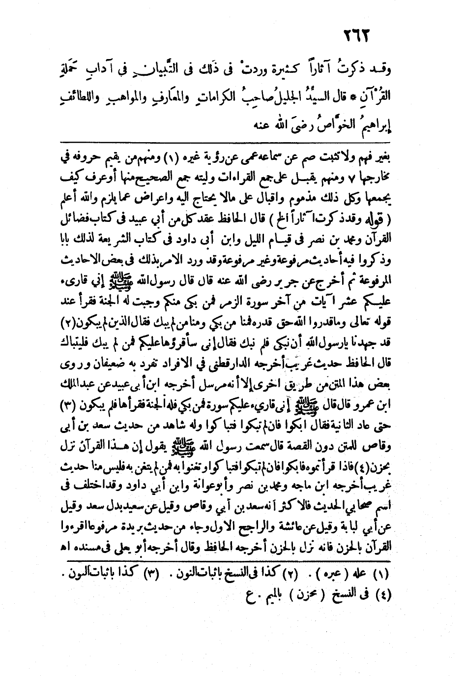 وقد ذكرت آثارا كثيرة وردت في ذلك في "التبيان في آداب حملة القرآن".