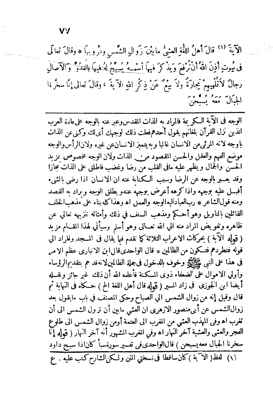 قال الواحدي قال ابن الأنباري عظم الأمر في هذا على النبي - صلى الله عليه وسلم - وخوف بالدخول في جملة الظالمين لأنه قد هم بتقديم الرؤساء وأولي الأموال على الضعفاء ذوي المسكنة فأعلمه الله أن ذلك غير جائز ونقله أيضًا ابن الجوزي في زاد المسير. قوله: (قَال أَهلُ اللغةِ الخ) حكاه في النهاية ثم قال وقيل أنه من زوال الشمس إلى الصباح وحكى المصنف في باب ما يقول بعد زوال الشمس عن أبي منصور الأزهري أن العشي ما بين أن تزول الشمس إلى أن تغرب اهـ، وفي المهذب العشي من المغرب إلى العتمة أو من زوال الشمس إلى طلوع الفجر والعشي والعشية آخر النهار اهـ، وفي المغرب المشهور أنه آخر النهار. قوله: {إِنَّا سَخَّرْنَا الْجِبَال مَعَهُ يُسَبِّحْنَ} [ص: 18] قال الواحدي في تفسير سورة سبأ كان إذا سبح داود