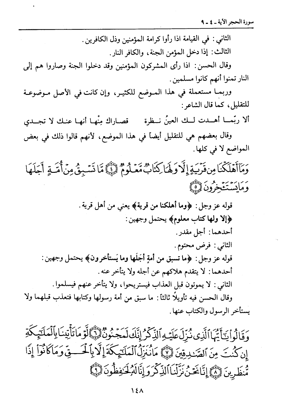 {وما أهلكنا من قرية إلا ولها كتاب معلوم ما تسبق من أمة أجلها وما يستأخرون} قوله عز وجل: {وما أهلكنا من قرية} يعني من أهل قرية. {إلا ولها كتاب معلوم} يحتمل وجهين: أحدهما: أجل مقدر. الثاني: فرض محتوم. قوله عز وجل: {ما تسبق من أمةٍ أجَلَها وما يَستأخرون} يحتمل وجهين: أحدهما: لا يتقدم هلاكهم عن أجله ولا يتأخر عنه. الثاني: لا يموتون قبل العذاب فيستريحوا , ولا يتأخر عنهم فيسلموا. وقال الحسن فيه تأويلاً ثالثاً: ما سبق من أمة رسولها وكتابها فتعذب قبلهما ولا يستأخر الرسول والكتاب عنها.