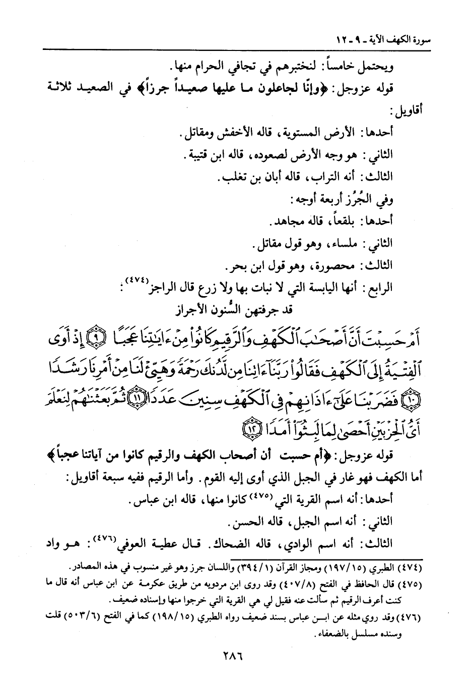 {أم حسبت أن أصحاب الكهف والرقيم كانوا من آياتنا عجبا إذ أوى الفتية إلى الكهف فقالوا ربنا آتنا من لدنك رحمة وهيئ لنا من أمرنا رشدا فضربنا على آذانهم في الكهف سنين عددا ثم بعثناهم لنعلم أي الحزبين أحصى لما لبثوا أمدا} قوله عز وجل: {أم حسبت أن أصحاب الكهف والرقيم كانوا من آياتنا عجباً} أما الكهف فهو غار في الجبل الذي أوى إليه القوم. وأما الرقيم ففيه سبعة أقاويل: أحدها: أنه اسم القرية التي كانوا منها , قاله ابن عباس. الثاني: أنه اسم الجبل , قاله الحسن. الثالث: أنه اسم الوادي، قاله الضحاك. قال عطية العوفي: هو واد