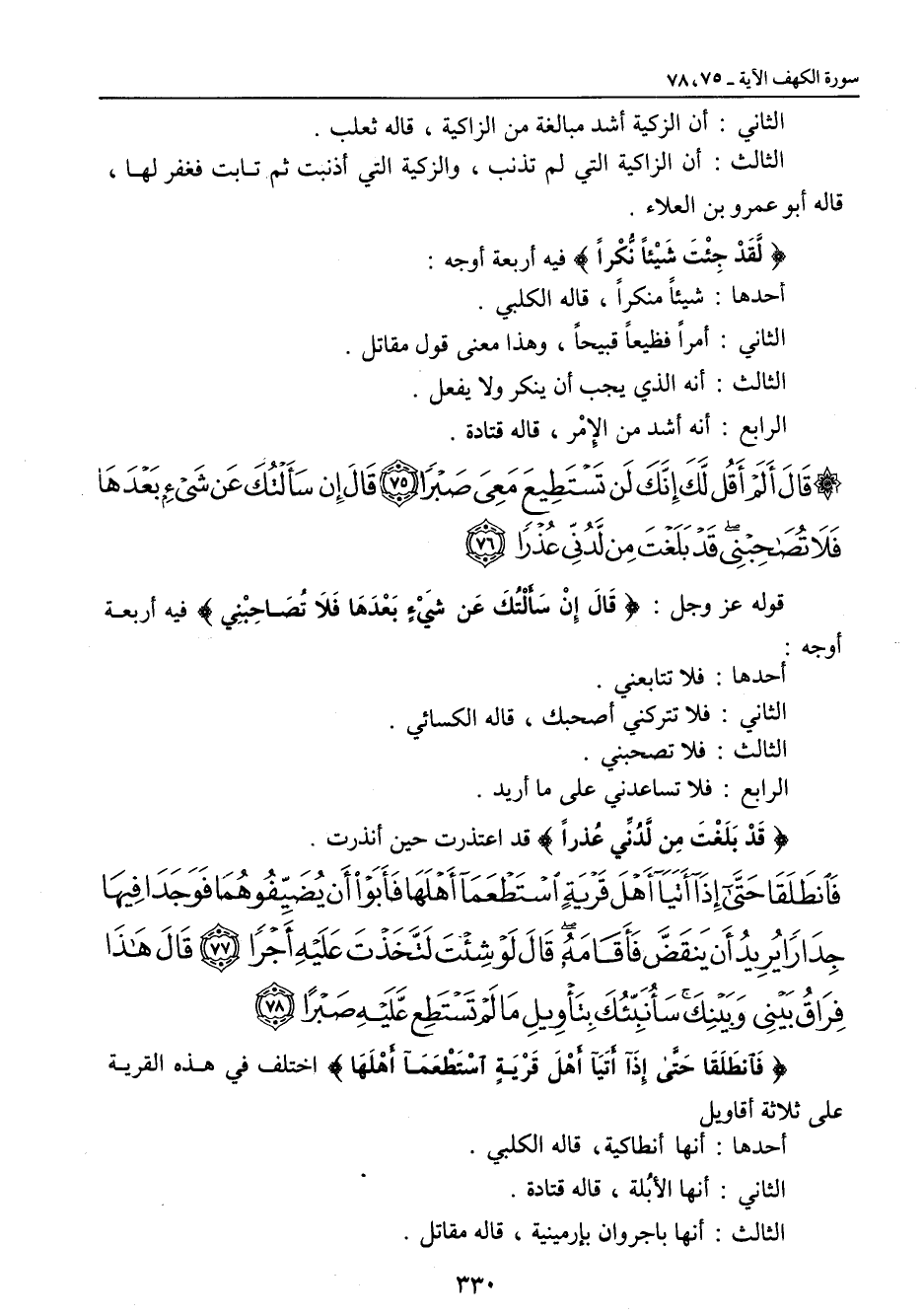 {قال ألم أقل لك إنك لن تستطيع معي صبرا قال إن سألتك عن شيء بعدها فلا تصاحبني قد بلغت من لدني عذرا} قوله عز وجل: {قَالَ إِنْ سَأَلْتُكَ عَن شَيْءٍ بَعْدَهَا فَلاَ تُصَاحِبْنِي} فيه أربعة أوجه: أحدها: فلا تتابعني. الثاني: فلا تتركني أصحبك , قاله الكسائي. الثالث: فلا تصحبني. الرابع: فلا تساعدني على ما أريد. {قَدْ بَلَغْتَ مِن لَّدُنِّي عُذراً} قد اعتذرت حين أنذرت.