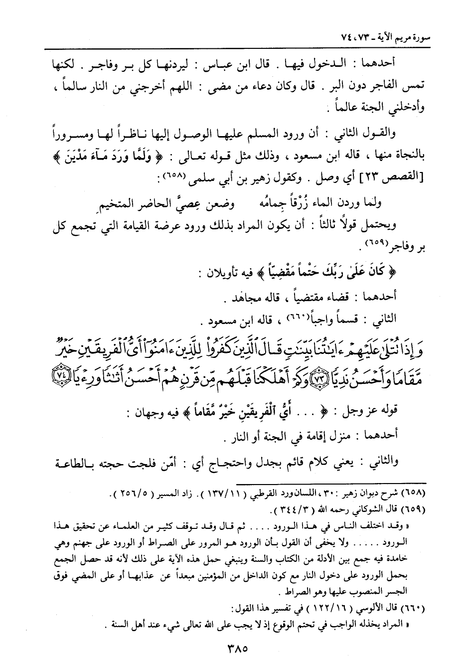 ويحتمل قولاً ثالثاً: أن يكون المراد بذلك ورود عرضة القيامة التي تجمع كل بر وفاجر: {كَانَ عَلَى رَبِّكَ حَتْماً مَقْضِيّاً} فيه تأويلان: أحدهما: قضاء مقتضياً , قاله مجاهد. الثاني: قسماً واجباً , قاله ابن مسعود.