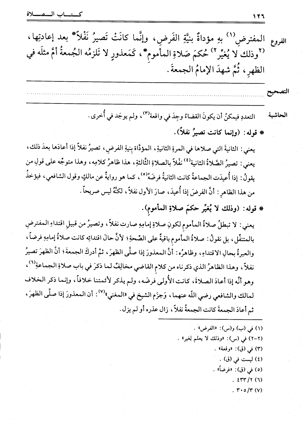 الْمُفْتَرِضِ1 بِهِ مُؤَدَّاةٌ بِنِيَّةِ الْفَرْضِ، وَإِنَّمَا كَانَتْ تَصِيرُ نَفْلًا بَعْدَ إعَادَتِهَا، 2"وَذَلِكَ لَا يُغَيِّرُ"2 حُكْمَ صَلَاةِ الْمَأْمُومِ. كَمَعْذُورٍ لَا تَلْزَمُهُ الْجُمُعَةُ أَمَّ مِثْلَهُ فِي الظُّهْرِ ثُمَّ شَهِدَ الْإِمَامُ الجمعة.