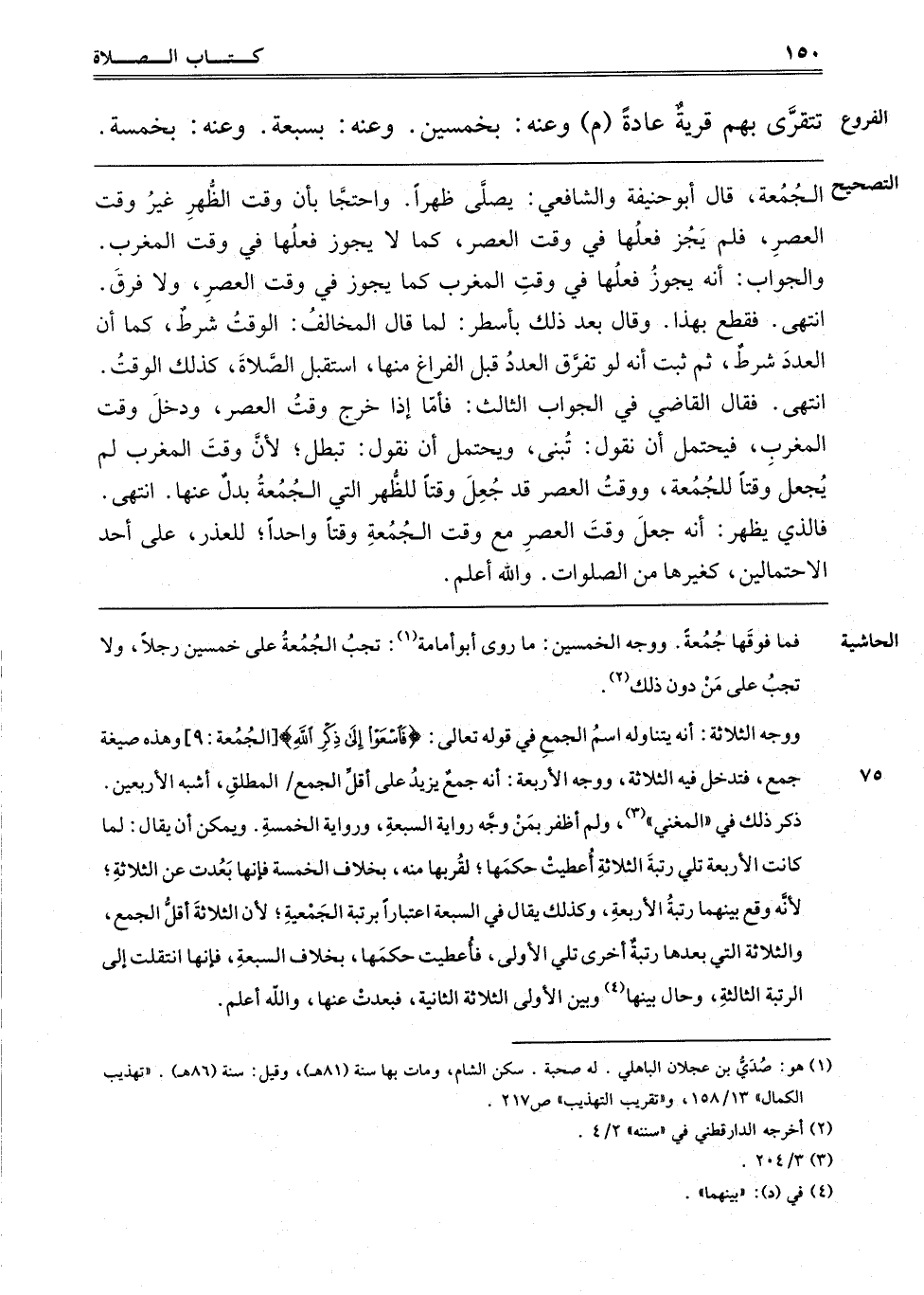 تَتَقَرَّى بِهِمْ قَرْيَةٌ عَادَةً "م" وَعَنْهُ: بِخَمْسِينَ، وعنه: بسبعة، وعنه: بخمسة،
