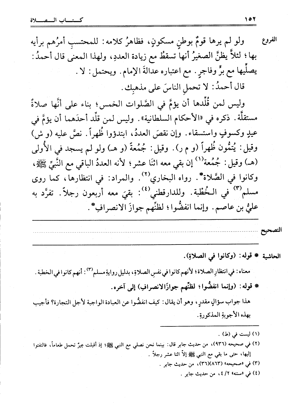 وَلَيْسَ لِمَنْ قَلَّدَهَا أَنْ يَؤُمَّ فِي الصَّلَوَاتِ الْخَمْسِ، بِنَاءً عَلَى أَنَّهَا صَلَاةٌ مُسْتَقِلَّةٌ، ذَكَرَهُ فِي الأحكام السلطانية، وليس لِمَنْ قَلَّدَ أَحَدَهُمَا أَنْ يَؤُمَّ فِي عِيدٍ وَكُسُوفٍ وَاسْتِسْقَاءٍ. وَإِنْ نَقَصَ الْعَدَدُ ابْتَدَءُوا ظُهْرًا، نَصَّ عَلَيْهِ "وش" وَقِيلَ: يُتِمُّونَ ظُهْرًا "وم ر" وَقِيلَ: جُمُعَةً "وهـ" وَلَوْ لَمْ يَسْجُدْ في الأولى "هـ" وقيل: جمعة1 إنْ بَقِيَ مَعَهُ اثْنَا عَشَرَ؛ لِأَنَّهُ الْعَدَدُ الْبَاقِي مَعَ النَّبِيِّ صَلَّى اللَّهُ عَلَيْهِ وَسَلَّمَ، وَكَانُوا فِي الصَّلَاةِ، رَوَاهُ الْبُخَارِيُّ2، وَالْمُرَادُ فِي انْتِظَارِهَا. كَمَا رَوَى مُسْلِمٌ3 فِي الْخُطْبَةِ. وَالدَّارَقُطْنِيّ4: بَقِيَ مَعَهُ أَرْبَعُونَ رَجُلًا، تَفَرَّدَ بِهِ عَلِيُّ بْنُ عَاصِمٍ، وَإِنَّمَا انْفَضُّوا لِظَنِّهِمْ جَوَازَ الِانْصِرَافِ.