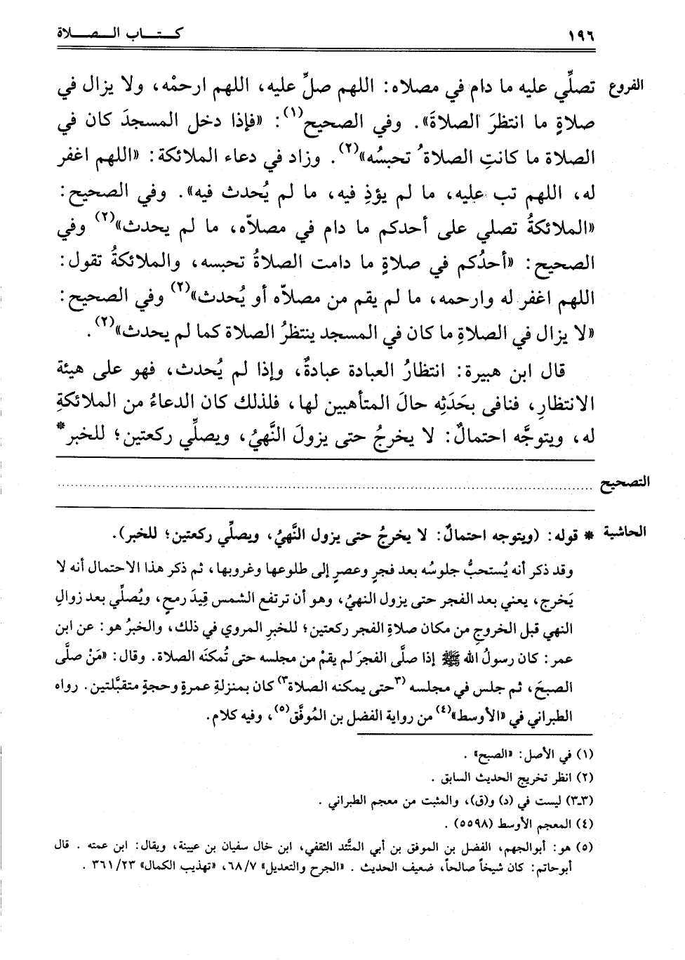 تُصَلِّي عَلَيْهِ مَا دَامَ فِي مُصَلَّاهُ: اللَّهُمَّ صَلِّ عَلَيْهِ، اللَّهُمَّ ارْحَمْهُ، وَلَا يَزَالُ فِي صَلَاةٍ مَا انْتَظَرَ الصَّلَاةَ". وَفِي الصَّحِيحِ1: "فَإِذَا دَخَلَ الْمَسْجِدَ كَانَ فِي الصَّلَاةِ مَا كَانَتْ الصَّلَاةُ تَحْبِسُهُ" 2. وَزَادَ فِي دُعَاءِ الْمَلَائِكَةِ: "اللَّهُمَّ اغْفِرْ لَهُ، اللَّهُمَّ تُبْ عَلَيْهِ، مَا لَمْ يُؤْذِ فِيهِ، مَا لَمْ يُحْدِثْ فِيهِ". وَفِي الصَّحِيحِ: "الْمَلَائِكَةُ تُصَلِّي عَلَى أَحَدِكُمْ مَا دَامَ فِي مُصَلَّاهُ، مَا لَمْ يُحْدِثْ" 2 وَفِي الصَّحِيحِ: "أَحَدُكُمْ فِي صَلَاةٍ مَا دَامَتْ الصَّلَاةُ تَحْبِسُهُ وَالْمَلَائِكَةُ تَقُولُ: اللَّهُمَّ اغْفِرْ لَهُ وَارْحَمْهُ، مَا لَمْ يَقُمْ مِنْ مُصَلَّاهُ أَوْ يُحْدِثْ" 2 وَفِي الصَّحِيحِ: "لَا يَزَالُ فِي الصَّلَاةِ مَا كَانَ فِي الْمَسْجِدِ يَنْتَظِرُ الصَّلَاةَ مَا لَمْ يُحْدِثْ" 2.