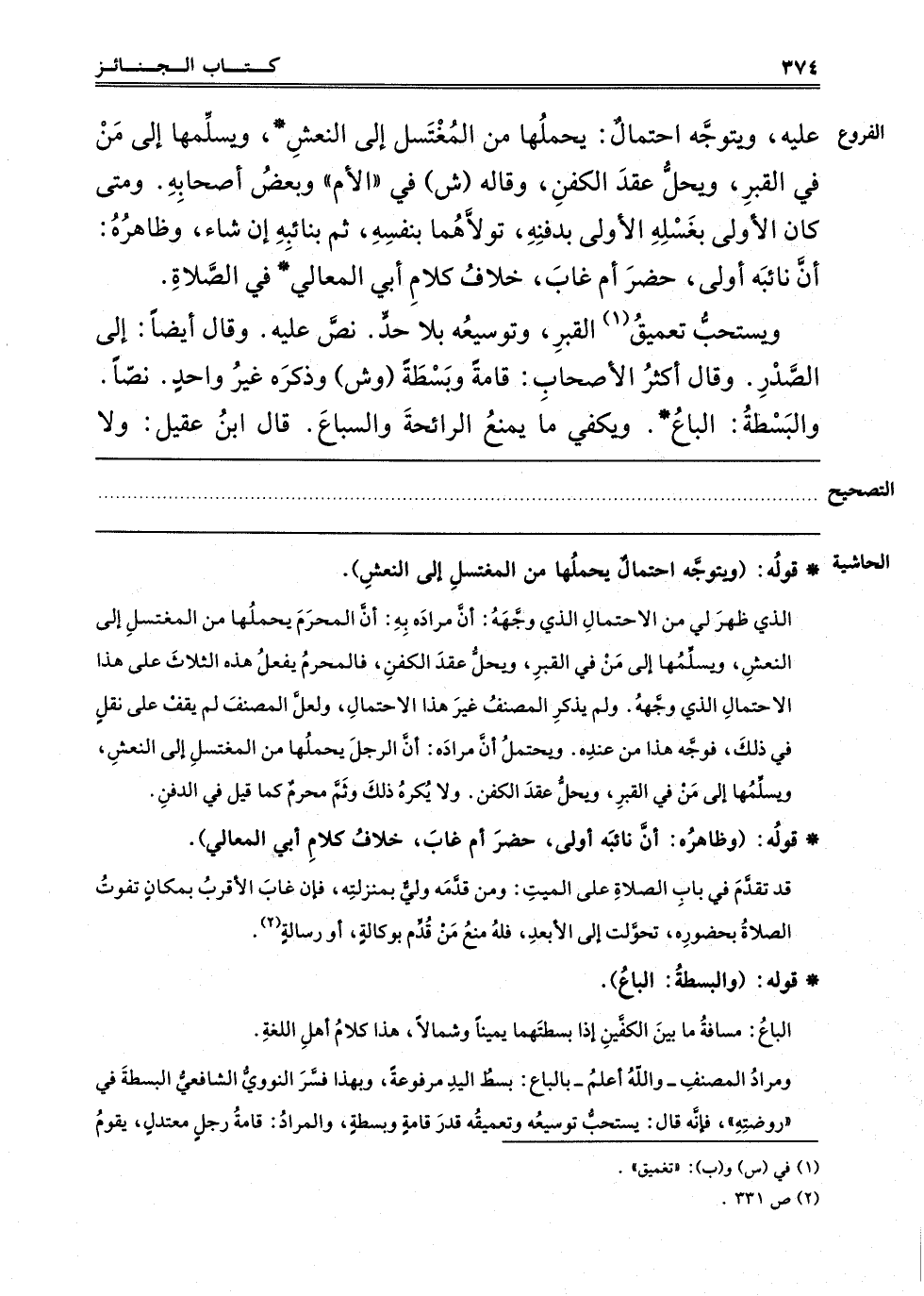 عَلَيْهِ، وَيَتَوَجَّهُ احْتِمَالٌ: يَحْمِلُهَا مِنْ الْمُغْتَسِلِ إلَى النَّعْشِ وَيُسَلِّمُهَا إلَى مَنْ فِي الْقَبْرِ، وَتُحَلُّ عُقَدُ الْكَفَنِ، وَقَالَهُ "ش" فِي الْأُمِّ وَبَعْضُ الصَّحَابَةِ. وَمَتَى كَانَ الْأَوْلَى بِغُسْلِهِ الْأَوْلَى بِدَفْنِهِ تَوَلَّاهُمَا بِنَفْسِهِ، ثُمَّ بِنَائِبِهِ إنْ شَاءَ، وَظَاهِرُهُ أَنَّ نَائِبَهُ أَوْلَى، حَضَرَ أَمْ غَابَ، خِلَافُ كَلَامٍ لِأَبِي الْمَعَالِي فِي الصَّلَاةِ.