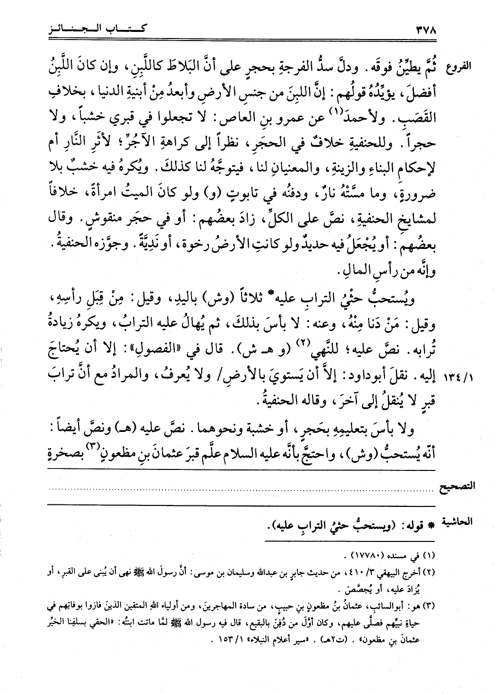 2 أخرج البيهقي 3/410، من حديث جابر بن عبد الله وسليمان بن موسى: أن الرسول اللَّهِ صَلَّى اللَّهُ عَلَيْهِ وَسَلَّمَ نَهَى أَنْ يبنى على القبر، أو يزد عليه، أو يجصص.