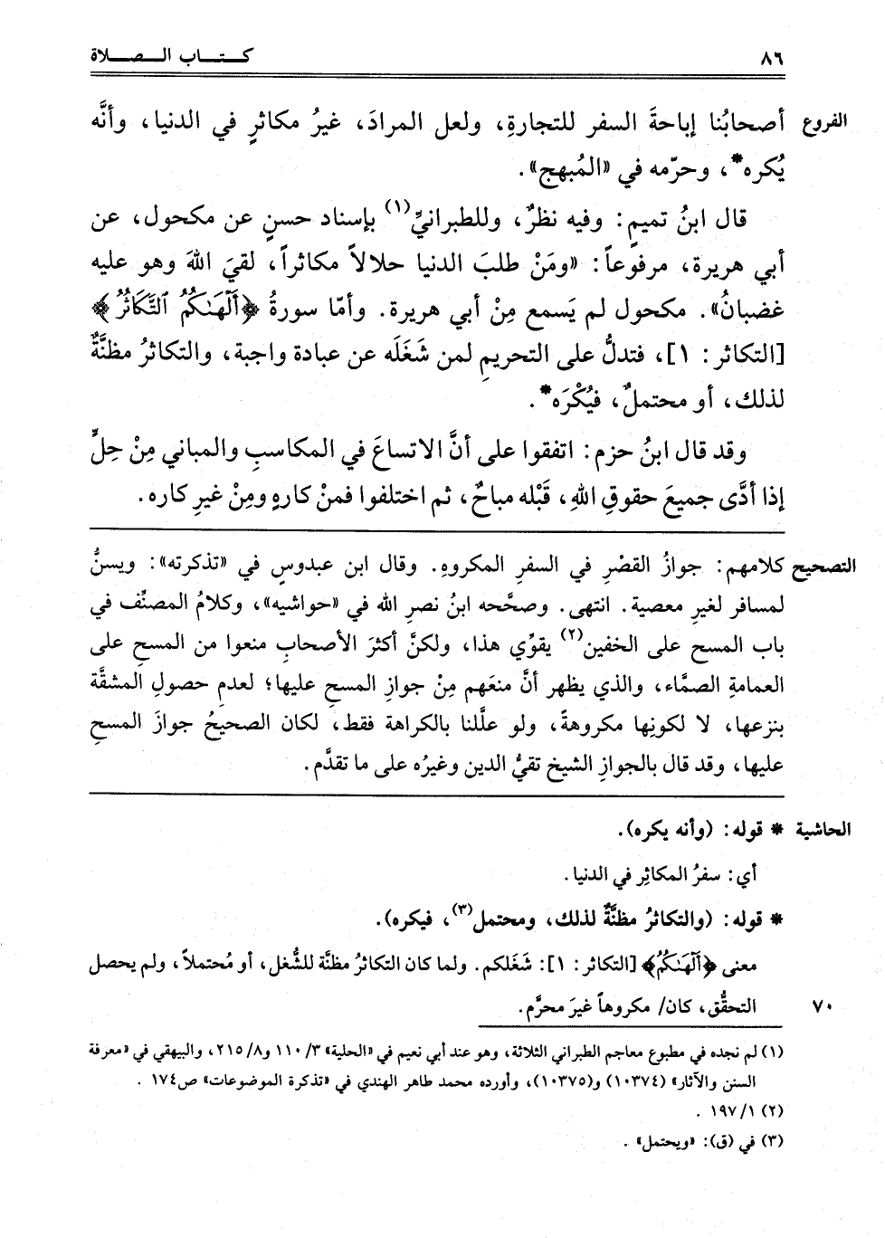 قَالَ ابْنُ تَمِيمٍ: وَفِيهِ نَظَرٌ، وَلِلطَّبَرَانِيِّ1 بِإِسْنَادٍ حَسَنٍ عَنْ مَكْحُولٍ، عَنْ أَبِي هُرَيْرَةَ، مَرْفُوعًا وَمَنْ طَلَبَ الدُّنْيَا حَلَالًا مُكَاثِرًا لَقِيَ اللَّهَ وَهُوَ عَلَيْهِ غَضْبَانُ مَكْحُولٌ لَمْ يَسْمَعْ مِنْ أَبِي هُرَيْرَةَ، وَأَمَّا سُورَةُ {أَلْهَاكُمُ التَّكَاثُرُ} [التكاثر: 1] فَتَدُلُّ عَلَى التَّحْرِيمِ لِمَنْ شَغَلَهُ عَنْ عِبَادَةٍ وَاجِبَةٍ، وَالتَّكَاثُرُ مَظِنَّةٌ لِذَلِكَ، أَوْ مُحْتَمِلٌ، فَيُكْرَهُ.
