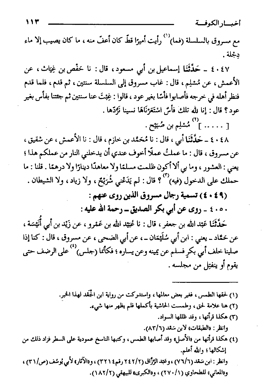 ٤٠٤٩) تسمية رجال مسروق الَّذِين روى عنهم: