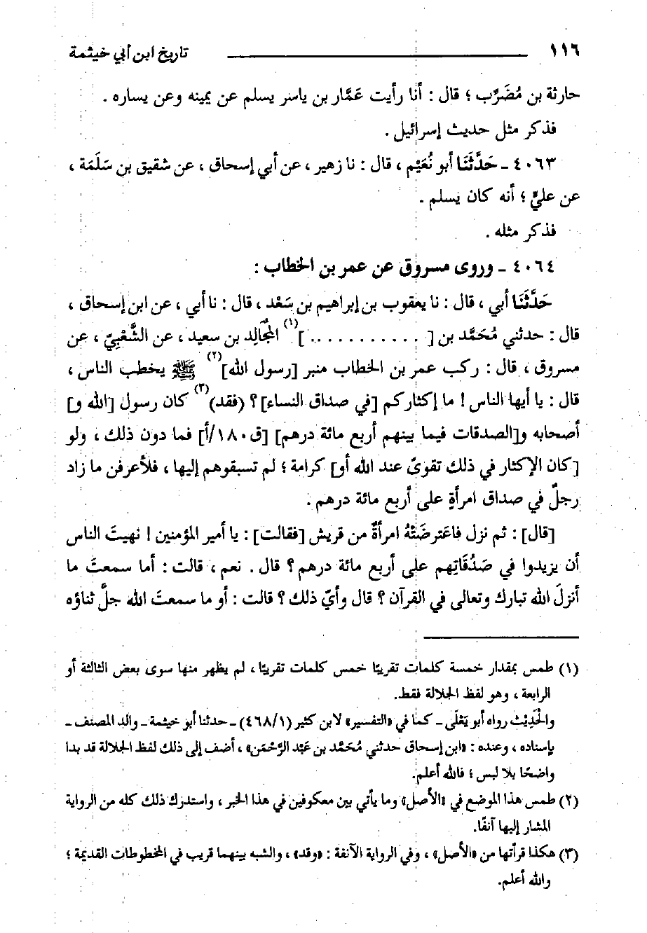 ٤٠٦٤- وروى مسروق عَنْ عُمَر بْن الخطاب: