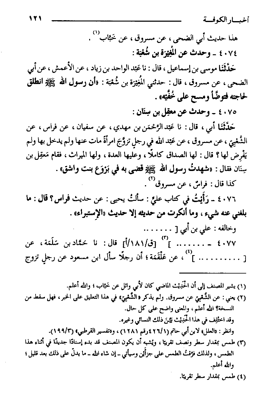 ٤٠٧٤- وحدث عَنِ المُغِيْرَة بْن شُعْبَة:
