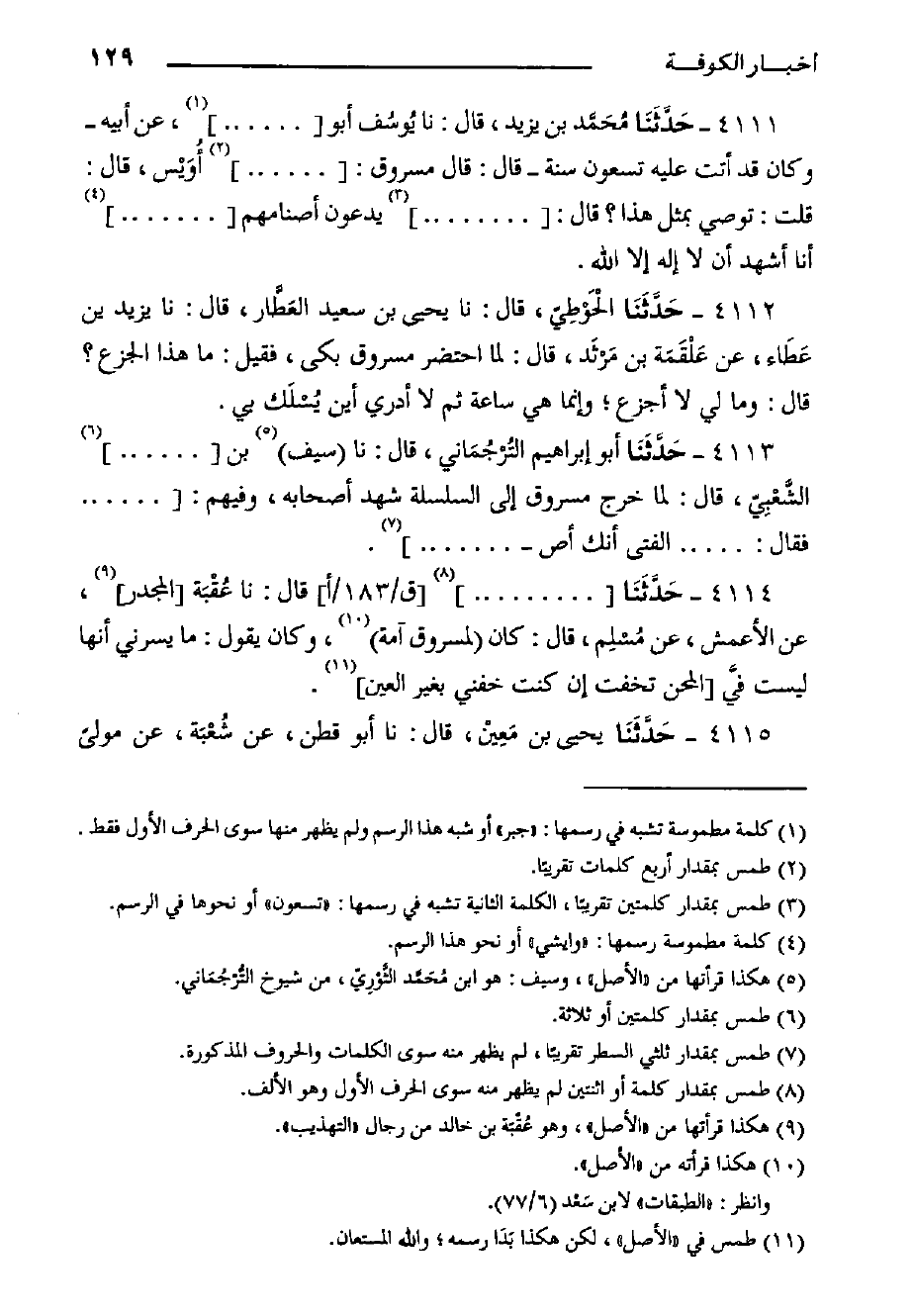 ٤١١٣- حَدَّثَنَا أَبُو إبراهيم التُرْجُمَاني، قال: حدثنا سيف بْن ... الشَّعْبِيّ، قَالَ: لمَّا خرج مسروق إِلَى السلسلة شهد أصحابه، وفيهم: ... فَقَالَ: ... الفتى أنك أص- ... . .
