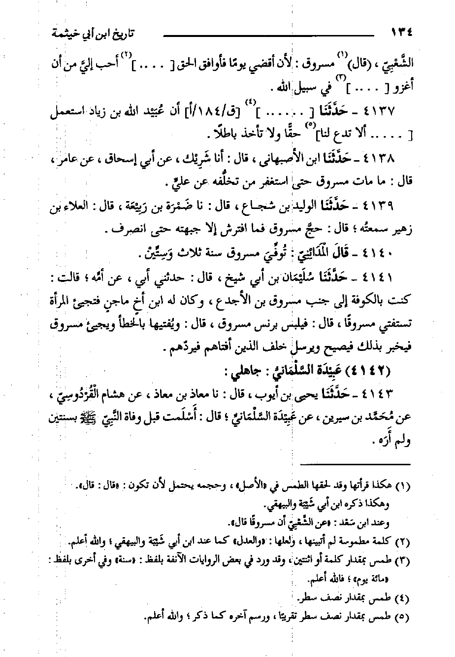 ٤١٤٠- قَالَ الْمَدَائِنِيّ: تُوفِّيَ مسروق سنة ثلاث وَسِتِّيْن.