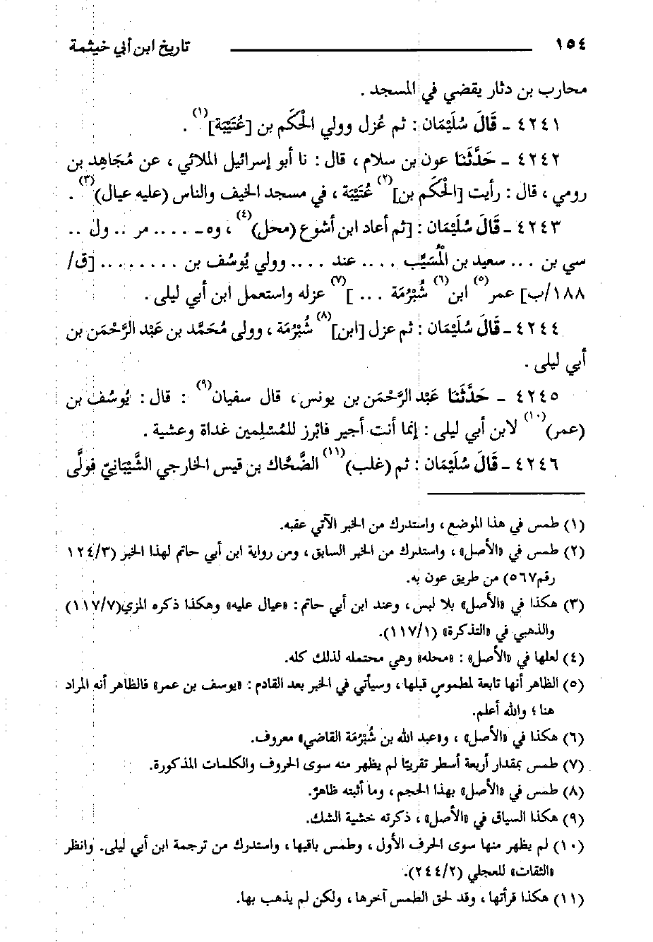 ٤٢٤٣- s قَالَ سُلَيْمَان: ثُمَّ أعاد ابْن أشوع محل، وه- ... مر.. ول.. سي بْن ... سَعِيد بْن الْمُسَيَّب ... عِنْدَ ... وولي يُوسُف بن ... [ق/١٨٨/ب] عُمَر ابْن شُبْرُمَة ... عزله واستعمل ابْن أَبِي ليلى.