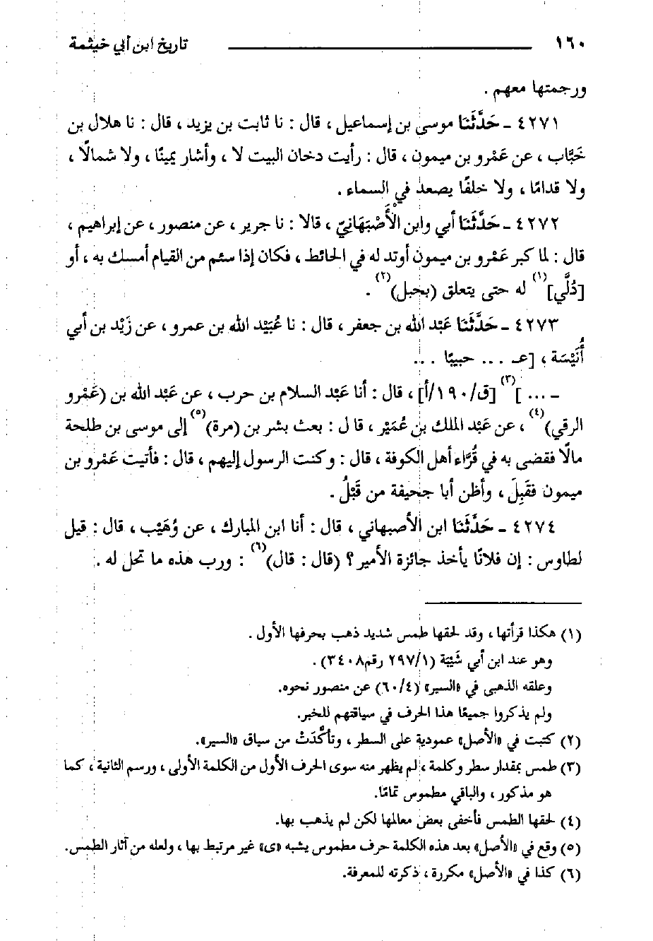 ٤٢٧٣- حَدَّثَنا عَبْد اللَّهِ بْنُ جَعْفَرٍ، قَالَ: حَدَّثَنَا عُبَيْد الله بن عمرو، عَنْ زَيْد بْن أبي أُنَيْسَة، عـ ... جيبًا ... [ق/١٩٠/أ] ، قَالَ: أَخْبَرَنَا عَبْد السلام بْن حَرْبٍ، عَنْ عَبْد اللَّهِ بْنِ عَمْرو الرَّقِّيِّ، عَنْ عَبْد الْمَلِكِ بن عُمَيْر، قا ل: بَعَثَ بَشْرُ بْنُ مُرَّةَ إِلَى مُوسَى بْنِ طَلْحَةَ مَالا فَقَضَى بِهِ فِي قُرَّاء أَهْلِ الْكُوفَةِ، قَالَ: وَكُنْتُ الرَّسُولَ إِلَيْهِمْ، قَالَ: فَأَتَيْتُ عَمْرو بْنَ مَيْمُونٍ فقَبِلَ، وَأَظَنُّ أَبَا جُحَيْفَةَ مِنْ قَبْلُ.