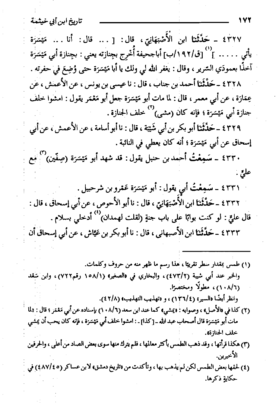 ٤٣٣٠- سَمِعْتُ أَحْمَد بْن حنبل يَقُولُ: قَدْ شهد أَبُو مَيْسَرَة (صِفّين مَعَ عليٍّ.
