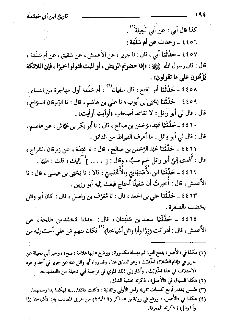 كتاب التاريخ الكبير لابن أبي خيثمة - السفر الثالث - ط الفاروق (اسم الجزء: 3)