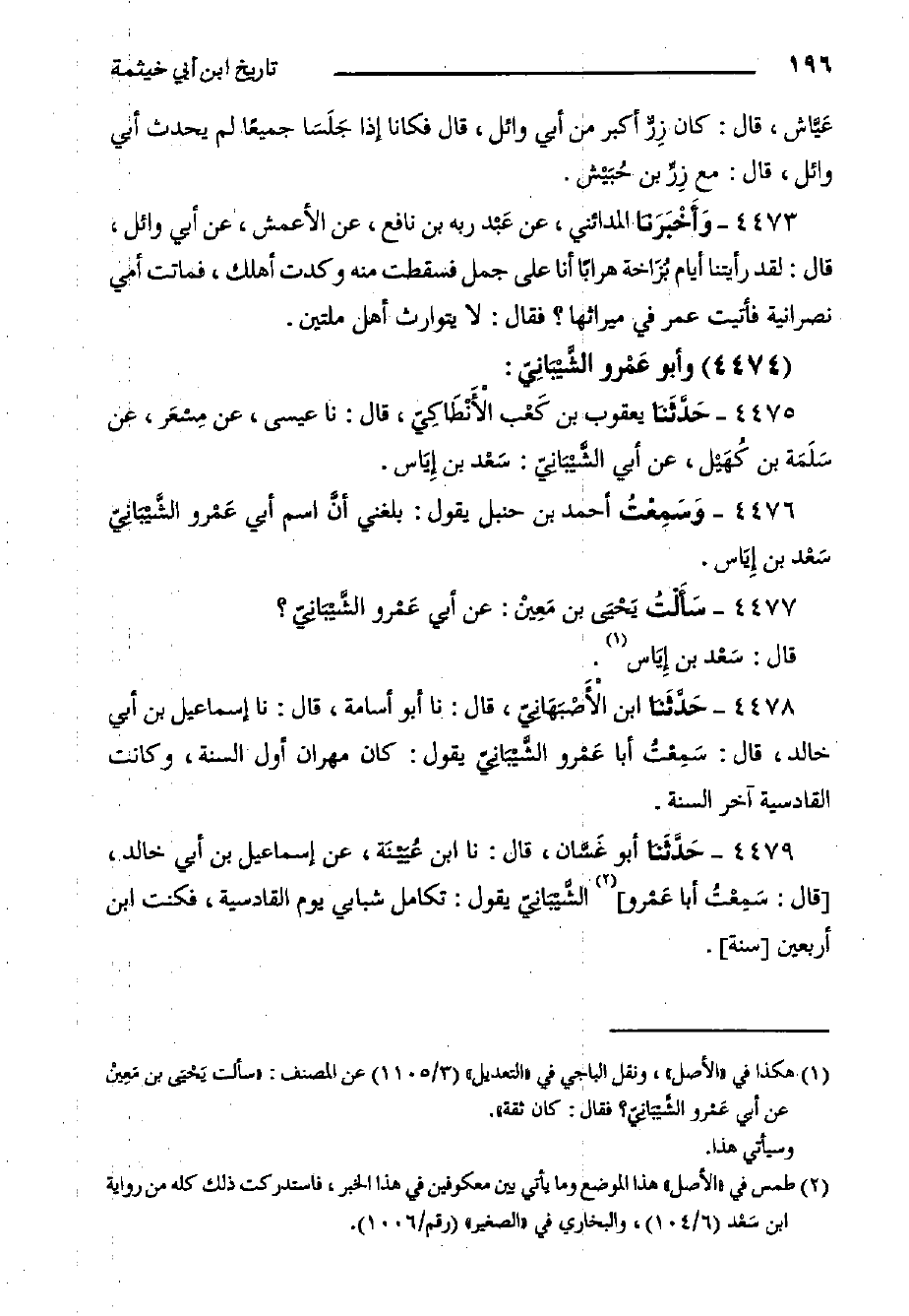 ٤٤٧٦- وَسَمِعْتُ أَحْمَد بْن حنبل يَقُولُ: بلغني أنَّ اسم أَبِي عَمْرو الشَّيْبَانِيّ سَعْد بْن إِيَاس.