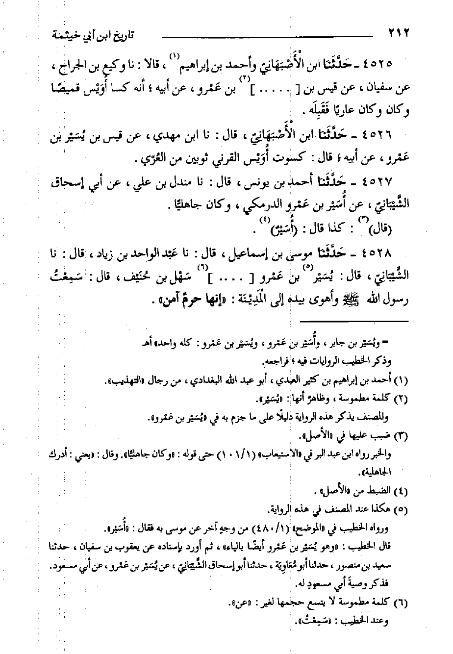 ٤٥٢٨- حَدَّثَنا مُوسَى بن إسماعيل، قال: حَدَّثَنَا عَبْد الْوَاحِدِ بْنُ زِيَادٍ، قال: حدثنا الشَّيْبَانِيّ، قال: حدثنا يُسَيْرِ بْنِ عَمْرٍو، عَنْ سَهْلِ بْنِ حُنَيْفٍ، قَالَ: سَمِعْتُ رَسُولَ اللَّهِ صَلَّى اللَّهُ عَلَيْهِ وَسَلَّمَ، وَأَهْوَى بِيَدِهِ إِلَى الْمَدِيْنَة، فَقَالَ: إِنها حَرَمٌ آمِنٌ
